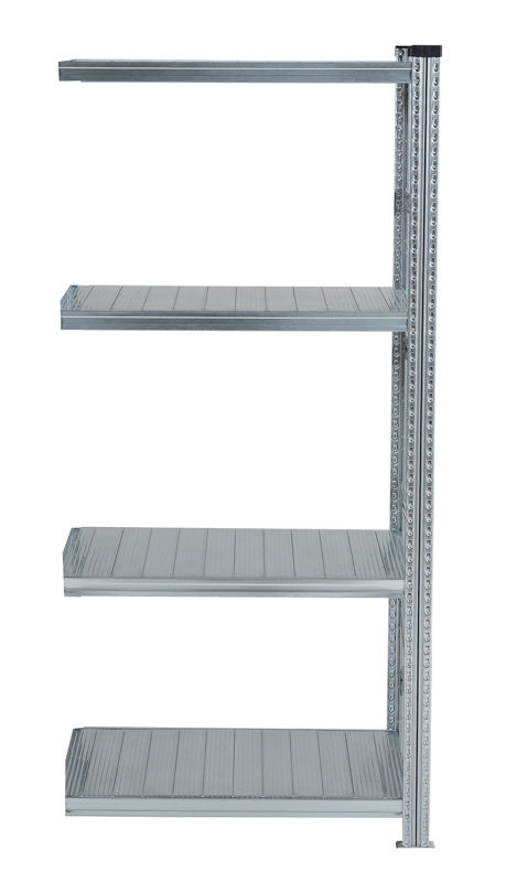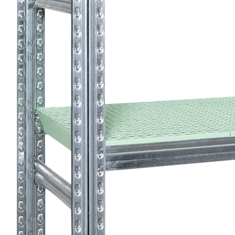 Lagerreol Flex, grundsektion, 976x320x1972 mm, 4 grønne fødevaregodkendte perforerede hylder frysemiljø
