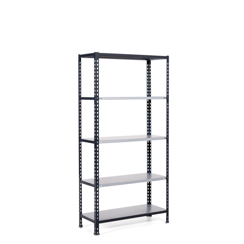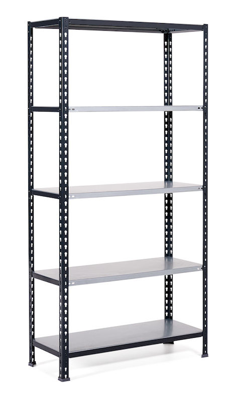 Stålreol Falster, BxDxH 1000x500x2000mm 5-hylder grå. Stabil stålreol med galvaniserede hylder. Nem at montere helt uden brug af skruer og værktøj. Stabil industrireol der kan belastes med op til 80 kg/pr. hylde og 800 kg pr. sektion hvis man anvender flere hylder. Pulverlakerede stolper og stag enten i blå (RAL 5010) eller grå (RAL 7016) med galvaniserede hylder. Reolen kan stå alene som en enkelt sektion eller sammenbygges med andre ved hjælp af en fikseringsplade. Hylderne kan flyttes i intervaller af 38 mm. Reolen leveres komplet med hylder og gulvskånere. Reolen bør fastgøres i gulv eller væg.