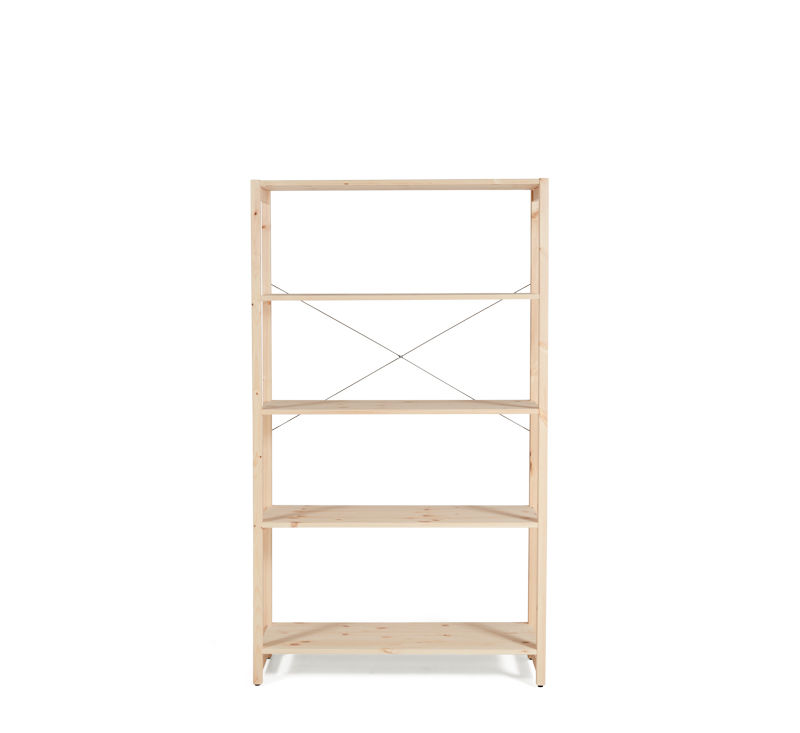 Træreol Tidan, grund, HxBxD 1780x1030x500 mm. Træreol Tidan af ubehandet massiv fyr. Produceret fra FSC-certificeret træ. Træreolen fås som grundsektion eller tilbygningssektion. Højde 1780 mm eller 2180 mm, dybde 300-600 mm, bredde 830 eller 1030 mm. Hylderne klarer en fordelt belastning på 90 kg og ca 500 kg/sektion. Reolen levereres komplet med 5 hylder/sektion. Rygkryds leveres med grundsektion, købes som tilbehør til tilbygningssektion.
