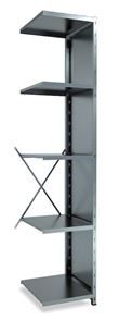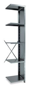 Lagerreol Gerdmansreolen Galvaniserad, lukket gavel, halv tilbygning, BxDxH 500x500x1960. Gerdmansreolen er overordentlig solid og holdbar. Reolen kan udvides med skuffer, værktøjstavler, aflastningsplader, hængemapperammer for bare at nævne nogle få muligheder fra vores brede tilbehørssortiment. Alle dele til gerdmansreolen kan købes enkelvis, hvilket gør den til en af markedets mest fleksible lagerreoler. Design din egen reol som tager udgangspunkt i dine specielle behov og som udnytter dine lokaler så effektivt som muligt. Gerdmansreolen er fremstillet af kraftigt materiale og klarer en belastning pr. hylde på 225 kg, hvis man komplementerer hylden med en forstærkningsprofil. Gerdmansreolen er enkel at samle og skille ad. Hylderne flyttes enkelt ved hjælp af små hyldebærere, helt uden brug af værktøj. Gulvskåner medfølger. Reolen skal forankres i væg eller gulv. Beslag kan tilkøbes.