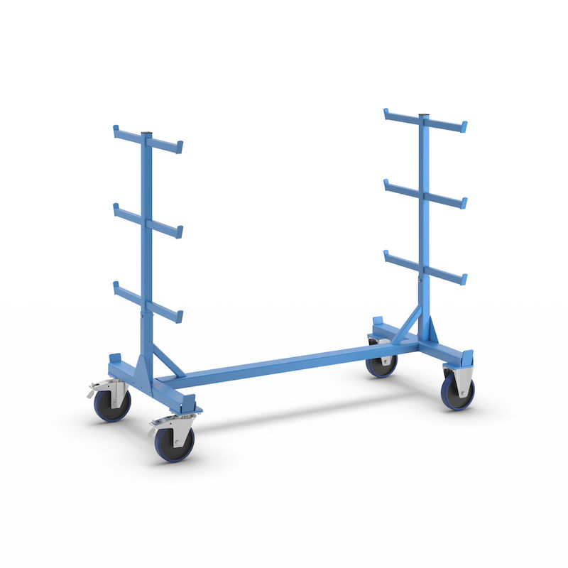 Langgodsvogn Simon, dobbeltsidet, lastkapacitet 700 kg. Stabil svejsekonstruktion. Kvalitetspulverlakering i lyseblå RAL 5012.