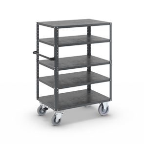 Den nemme og hurtige tilpasning til driftsprocesser gør CustomLine vognen til et bæredygtigt og omkostningseffektivt alternativ til at købe et nyt, ekstra produkt. Denne fleksibilitet gør det muligt at udnytte ressourcerne optimalt. Og hvis der er behov for reservedele, er de altid til rådighed. Hyldevognens stabilitet og robusthed gør det muligt at transportere komponenter og tunge genstande sikkert.