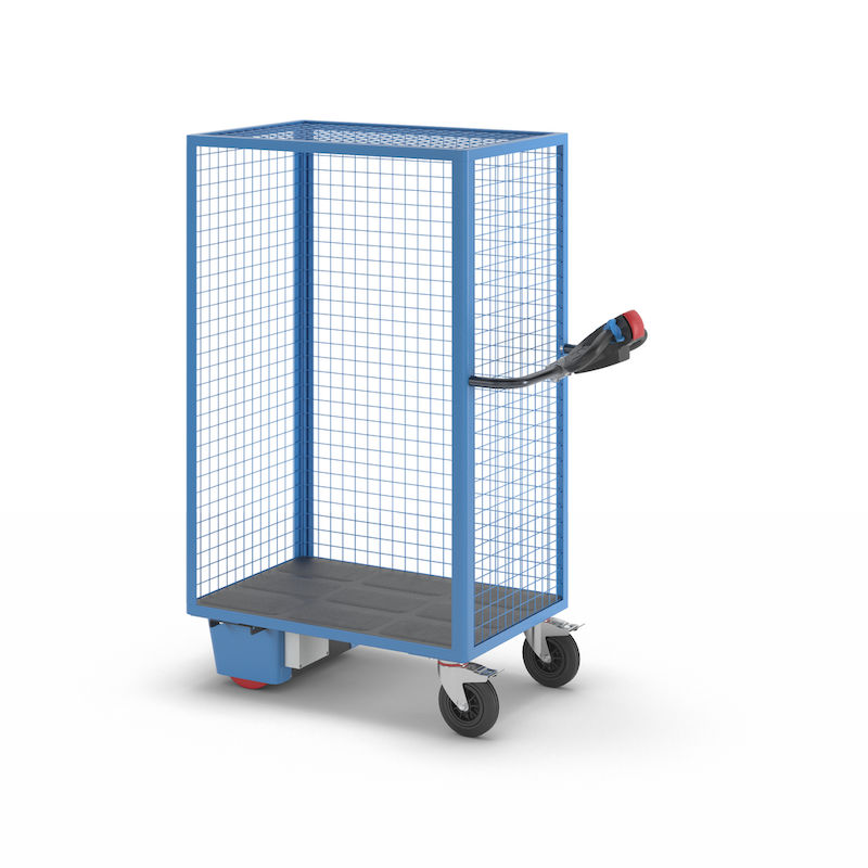 Hyldevognen eurokraft pro med elmotor imponerer med sin robuste konstruktion og mange anvendelsesmuligheder. Denne skabsvogn er ideel til industrielle formål og giver mulighed for struktureret opbevaring, organisering og sikker transport af varer og materialer. Hyldevognen er med en kvalitetspulverlakering og højdejusterbare lastarealer af sort, belagt MDF robust og fleksibel i brug. De forskellige versioner med et til tre lastarealer eller uden lastareal giver dig løsninger på mange behov. Med sidevæggenes gitterstruktur kan du hele tiden se vognens indhold, og der er en god luftcirkulation. Den skridsikre bundplade af genbrugsplast giver en sikker og stabil opbevaring. Den er olieresistent samt stort set syreresistent og vejrbestandig. De drejelige hjul med bremse sikrer vognen, når den er parkeret.