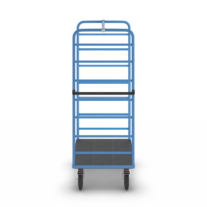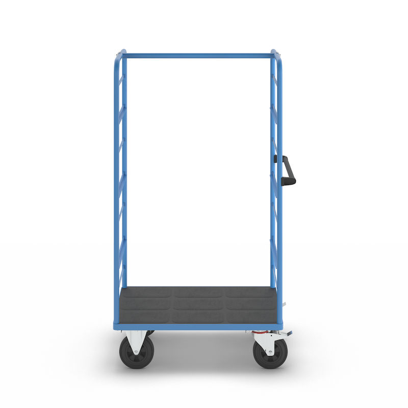 Hyldevogn Ilotar, 2 sidevægge, lastareal 975 x 700 mm, massivt gummi. Stabil svejsekonstruktion. Kvalitetspulverlakering i lyseblå RAL 5012 og fleksible anvendelsesmuligheder.