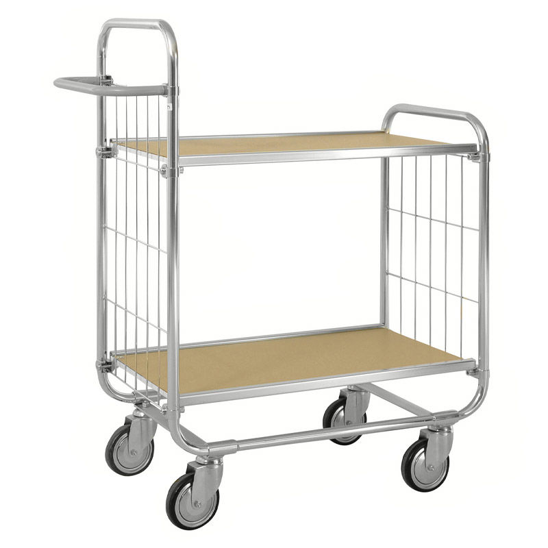 Fleksibel elforzinket hyldevogn med en bred vifte af anvendelsesmuligheder. Findes i forskellige størrelser med med 2, 3 eller 4 laminathylder. Vognene findes endvidere i en ESD-udgave. Med trinløst indstillelige hylder, 4 drejelige hjul Ø 125 mm. Lastkapacitet 250 kg. Leveres usamlet.