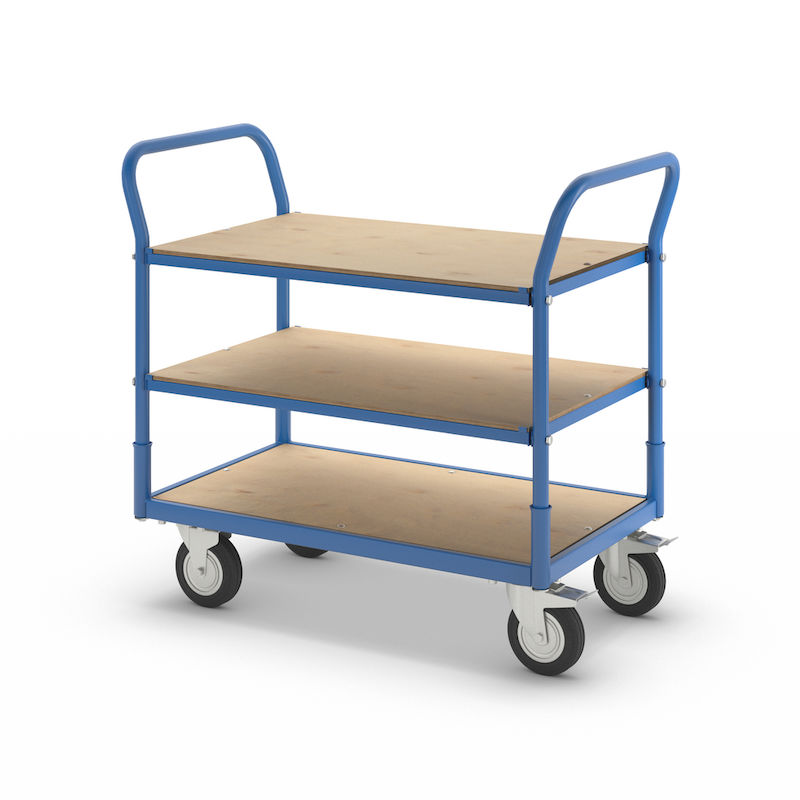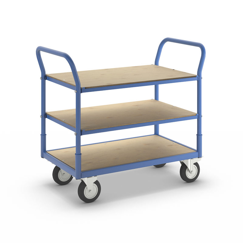 Rullebord Flex Vilgot, lastkapacitet 300 kg, 3 hylder. Rullebordet Flex udmærker sig ved høje kvalitet til prisen samt funktionalitet i forhold til det interne materialeflow. Takket være den robuste og boltede stålkonstruktion med pulverlakering lagervognen velegnet til daglig brug i virksomheder med behov for at flytte let til mellemtungt gods.