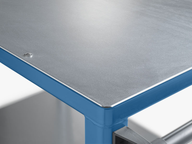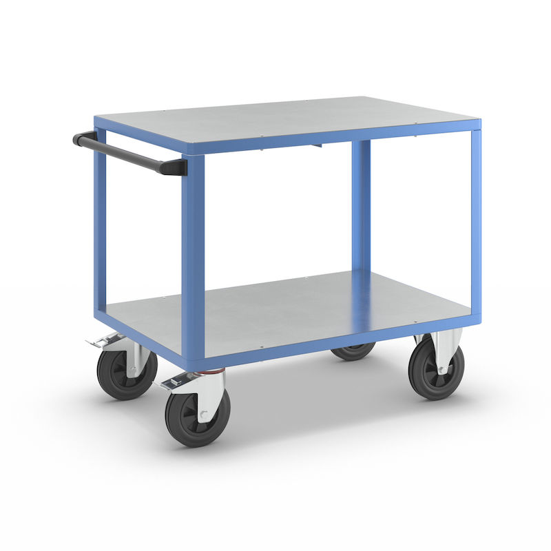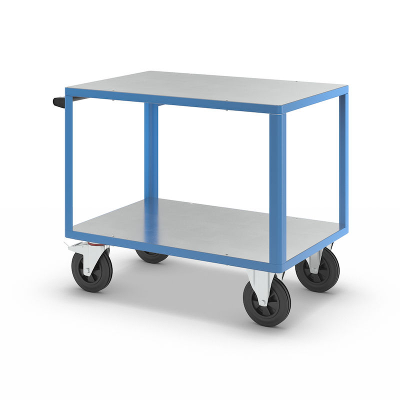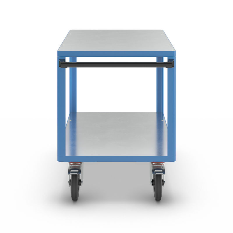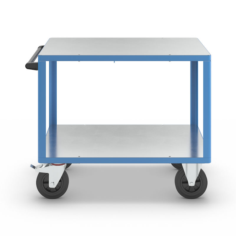 Rullebord Industri Industri, 2 lastarealer med forzinkede stålholdere, lastareal 1050 x 700 mm, lyseblåt stel. Rullebordet er en perfekt støtte i det daglige arbejde, især i forbindelse med