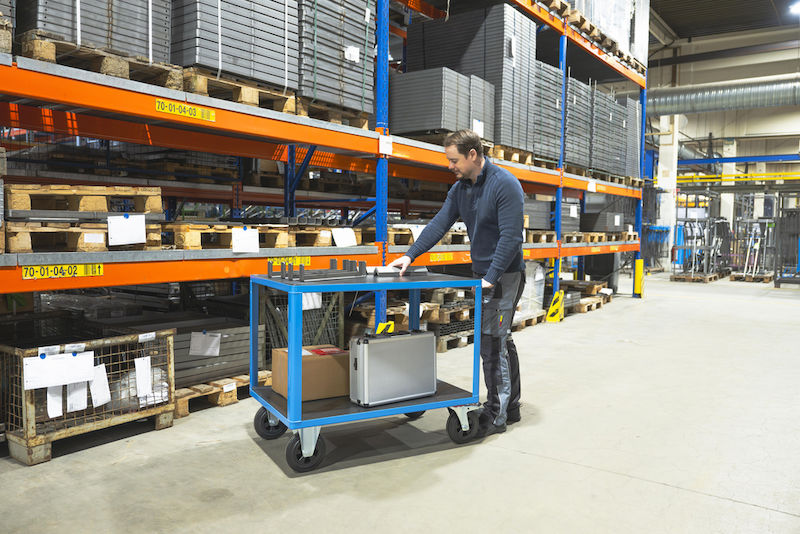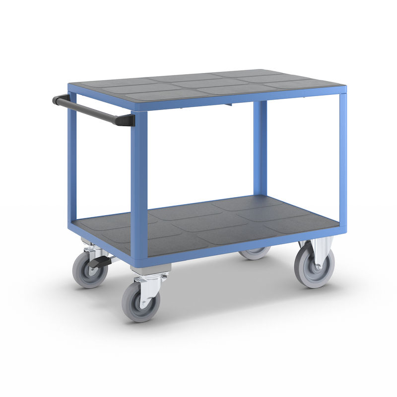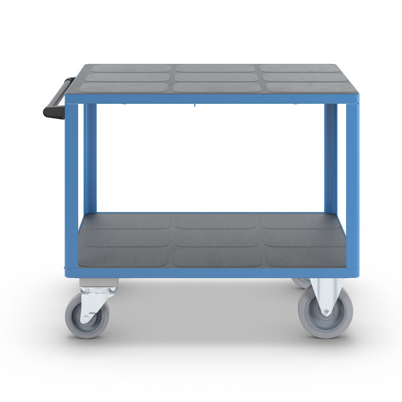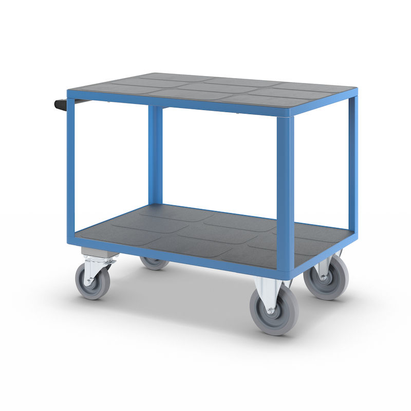 Rullebord Industri Industri, 2 lastarealer, med centralbremse, lastareal 1050 x 700 mm, lyseblå