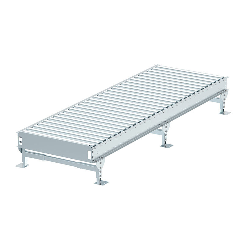 Rullebane Rogn til paller, LxB 3000x900 mm, CC 100 mm, max 1000 kg/m. Rullebane Rogn til paller, komplet pakke. Rullebane Rogn til palletransport indenfor industri, lager og logistik. Ikke-drevet rullebane, der letter håndtering af paller og giver et effektivt flow af varerne. Trinløse justerbare ben gør det let at indstille den ønskede hældning på rullebåndet så man nemt kan håndtere varerne. Lille hældning gør det let at flytte pallen manuelt, større hældning betyder, at de automatisk ruller væk ved hjælp af tyngdekraften. Stabil U-formet sideprofil 160 mm. Rullerne stikker ud over 5 mm. Leveres umonteret.