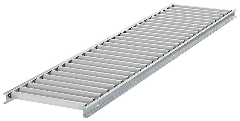 Rullebane Sif, 3000x600 mm, plastruller cc 105 mm. Rullebane til transport af let og mellemtungt stykgods med glat bund som fx kasser, bakker og pakker. Udrevet rullebane, der letter håndteringen og giver et effektivt flow i industri, lager og logistik. Stabil U-formet sideprofil på 70 mm med en hulinddeling på c/c 26,3 mm. Rullerne rager 5 mm ud. Rullerne med en diameter på 50 mm har en fjedrende akselende samt lejehus med stålkugler, der er konstrueret til at rulle let, også i forbindelse med letvægtsgods. Leveres usamlet. Vælg plastruller ved behov for støjsvag drift og ellers metalruller, der kan belastes mere.