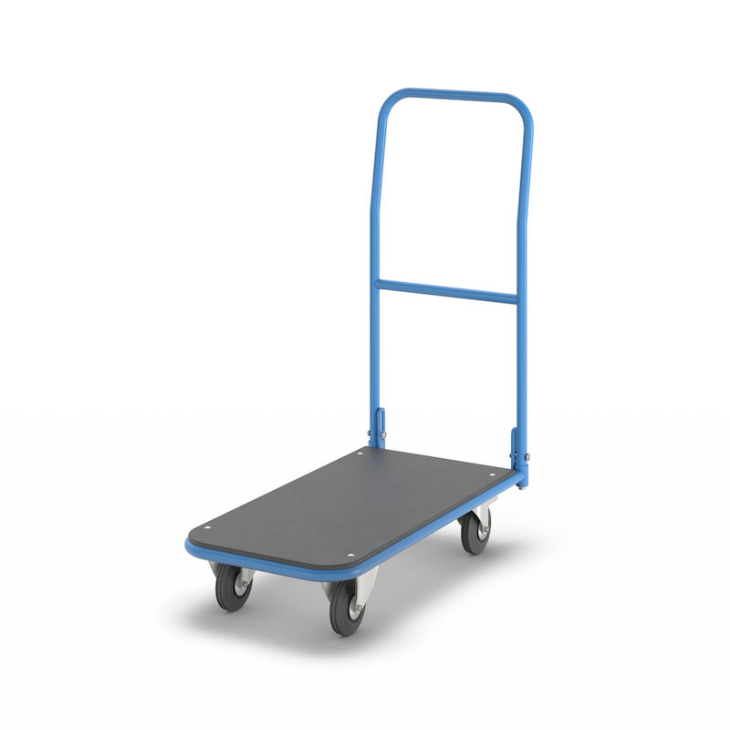 Platformsvogn Lova, med sammenklappelig skubbebøjle, lastareal af MDF.