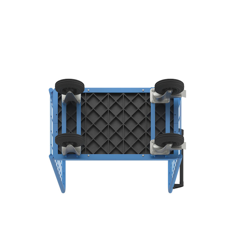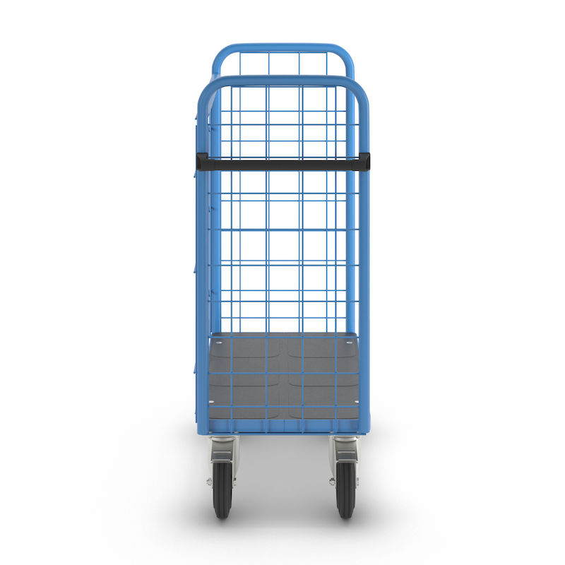 Hyldevogn med gitter på 3 sider, universal Noor, med gittersider, 3-sidet, længde 950 mm. Pulverlakeret, som standard lyseblå RAL 5012. Udstyret med gitter på 3 sider til sikring af lasten. Bagvæggens maskestørrelse 150 x 300 mm, for- og bagendes maskestørrelse 100 x 100 mm.