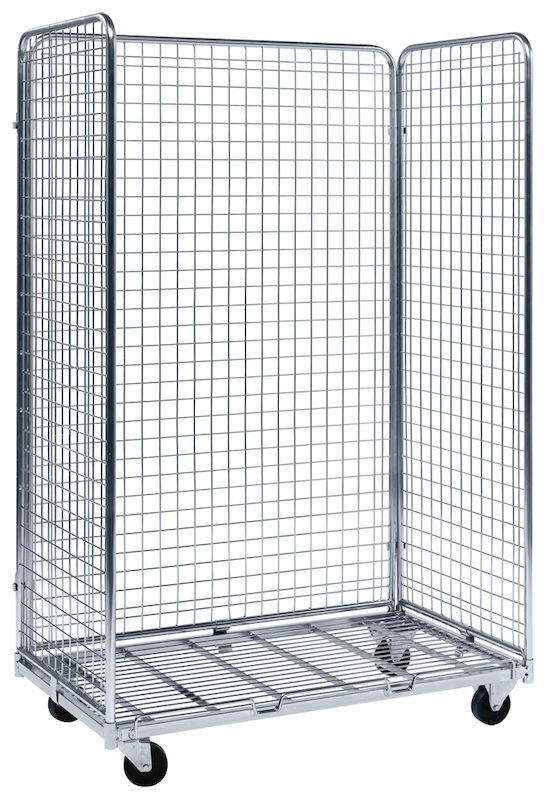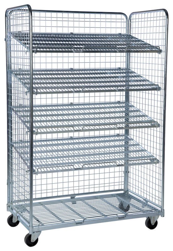 Galvaniseret vogn, der holder varer på plads. Lille maskestørrelse