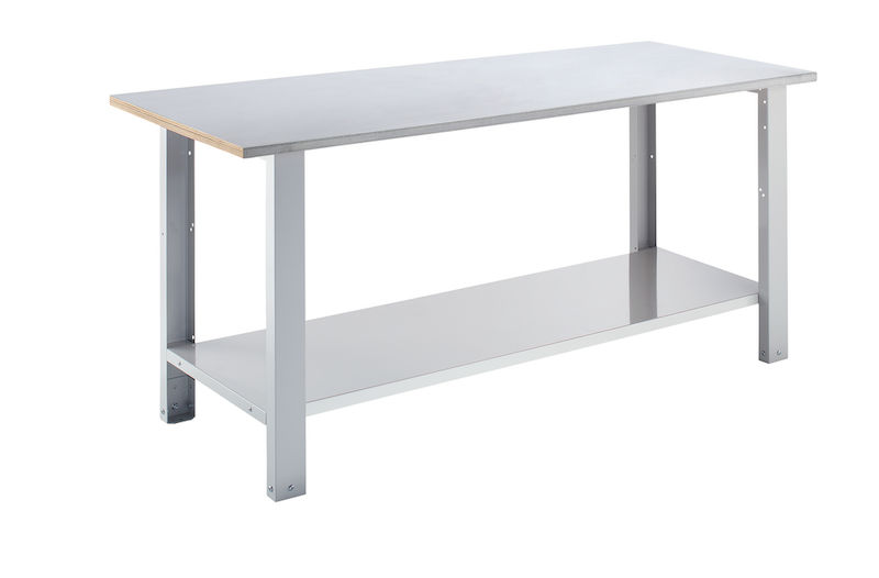 Arbejdsbord Henning. Stabil, pulverlakeret stålkonstruktion. Stel i lysegrå RAL 7035.