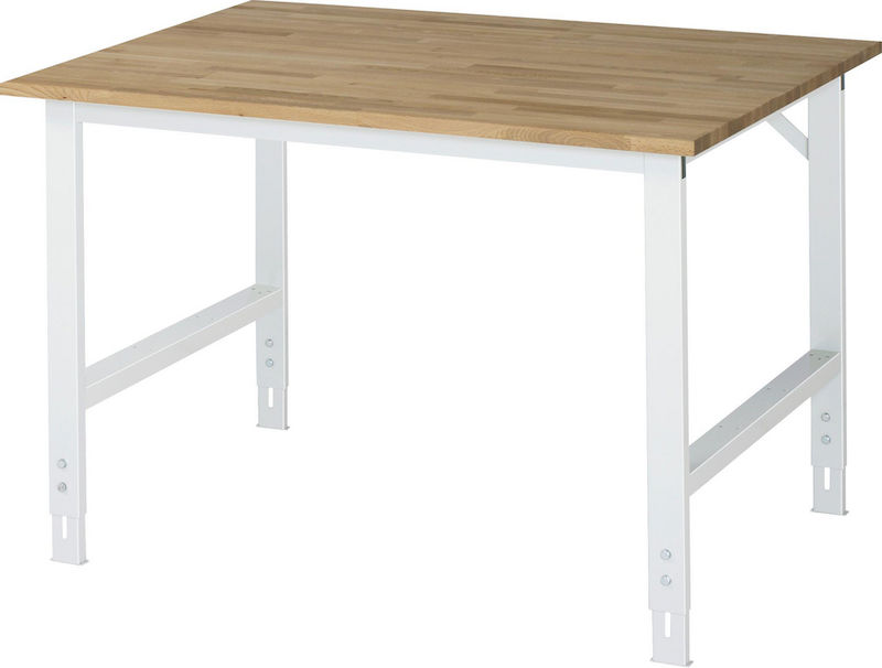 Arbejdsbord Rickard, stel 60 x 30 mm, massiv bøgeplade, BxD 1250 x 1000 mm, lysegrå. Stabil funktionsunderkonstruktion af stålrørsprofil med fodelementer, tværstivere og afstivningstraverser. Miljøvenlig pulverlakering.