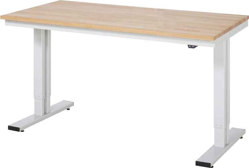 Hæve sænke arbejdsbord Dagfinn, højde 720 – 1120 mm, massiv bøgeplade, BxD 1500 x 800 mm. Støjsvag, trinløs og absolut synkron justering af arbejdshøjden med op til 400 mm ved hjælp af løftesøjler med integreret lineær motor. Justeringshastighed 38 mm/s (ubelastet).
