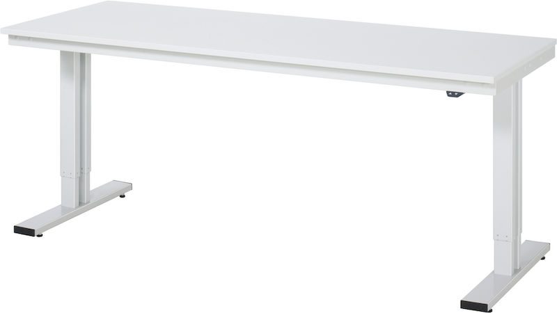 Hæve sænke arbejdsbord Dagfinn, højde 720 – 1120 mm, melaminbelagt spånplade, BxD 2000 x 800 mm. Støjsvag, trinløs og absolut synkron justering af arbejdshøjden med op til 400 mm ved hjælp af løftesøjler med integreret lineær motor. Justeringshastighed 38 mm/s (ubelastet).