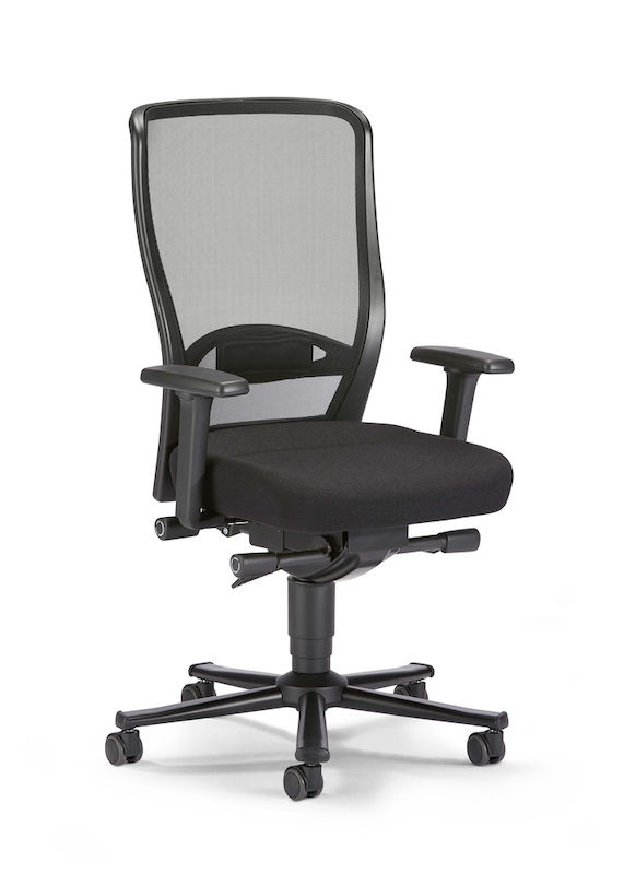 Arbejdsstol Emin. Denne ergonomiske arbejdsstol understøtter en sund kropsholdning og giver et behageligt siddeklima og med størst mulig komfort. Det ekstra store og robuste ryglæn består af en 3D-membran med en plastramme hele vejen rund og en luftig netryg.