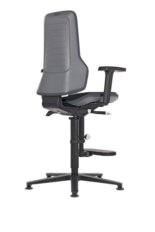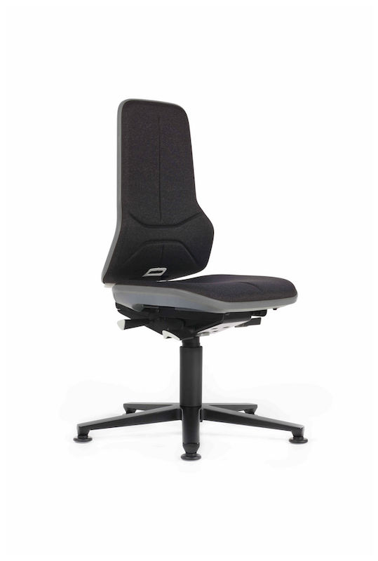 Arbejdsstol med permanentkontakt og ergonomipakke. Gasfjederhøjdeindstilling fra 590 til 870 mm. Aluminiumsfodkryds med hjul, i farven sort. Foddiameter 700 mm. Sædehældningsjustering fra 0 til +9°.