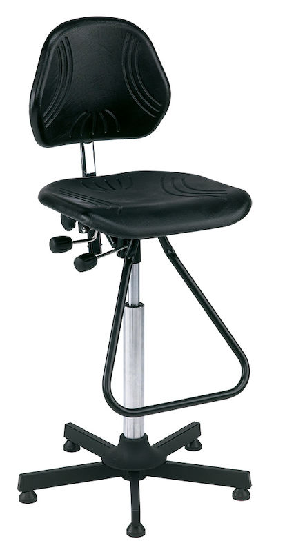 Stabile stole med ergonomi, teknik og kvalitet af højeste standard. Industristolene har et bredt, ergonomisk skålformet sæde af sort integralskum.