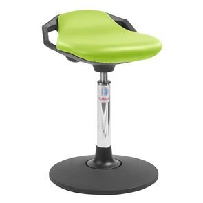 Ståstol Oliver, med balance stativ, H 510-700 mm, grøn. Ståstol Oliver. Denne ståstol har et bevægeligt leddelt (balancestativ) til aktivt siddende. Hvilket betyder, at du får en bedre vægtfordeling, så du slapper af i ryggen, og i stedet bruger de de store muskelgrupper i benene. Med den flade og stabile base kan du sidde afslappet og sikkert, og du kan nyde komfort og sunde bevægelser på samme tid. Sædet har også en behagelig støtte til lænden. Håndtag i siderne gør det lett at flytte stolen. Sædet er betrukket med kunstlæder, hvilket gør den nem at holde ren, og polstring med koldskum gør den blød og behagelig. Stolen fås i forskellige farver og højder.