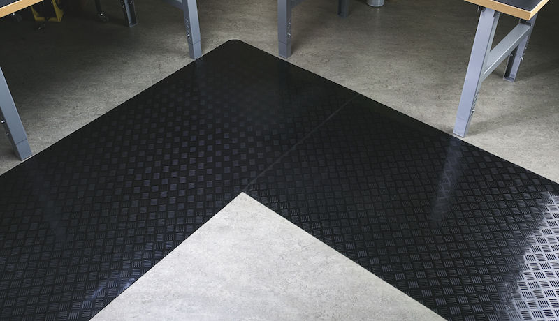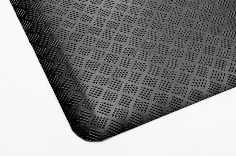 Undersiden af cellegummi og alle kanter er skrå for at minimere risikoen for snubleulykker og gøre det muligt at køre op med en vogn. Måtten tåler visse olier, væsker og stænk, men må ikke stå i væske. Svenskproduceret gulvmåtte i ESD-udførelse. Tykkelse 11 mm.