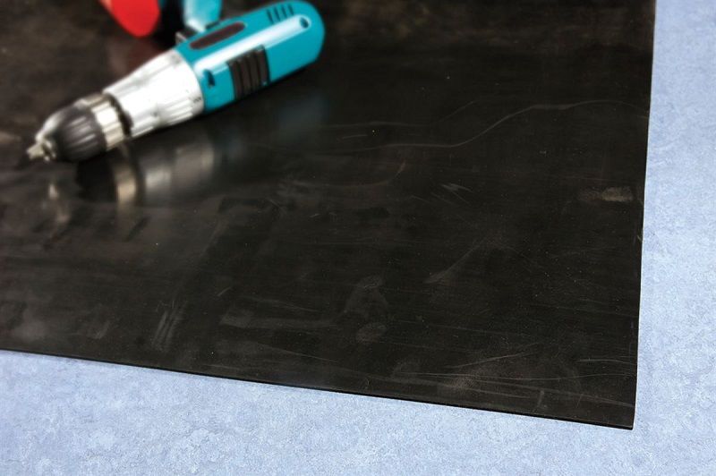 Glat gummidug, B 1400 mm x løbende meter, sort. Glat sort gummidug, B 1400 mm. En slidstærk gummimåtte til alle miljøer f.eks. arbejdsbænke og gulve i køretøjer eller lokaler. Gummimåtten virker dæmpende på både lyd og stød og er f.eks. velegnet som lydabsorberende beskyttelse på borde, bænke, hylder, skuffer, vægge og døre.