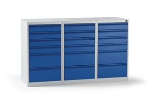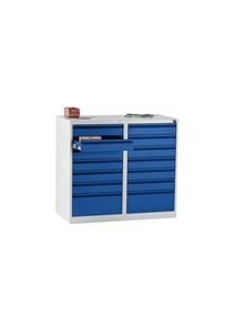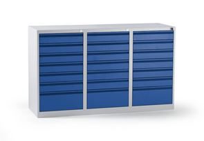 Værktøjsskab Hadi, HxBxD 1800 x 1000 x 500 mm, 24 skuffer, ensianblå skuffer. Stabil, pulverlakeret stålkonstruktion.