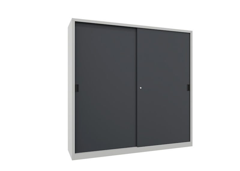 Dette robuste skydedørsskab imponerer med sin stabile og svejsede konstruktion af metal og er særligt velegnet til værksteder, lagerområder og industrielle miljøer med begrænset plads. Den kompakte konstruktion med letgående skydedøre sparer værdifuld plads og gør det muligt at udnytte pladsen på smalle gange eller i hjørner.