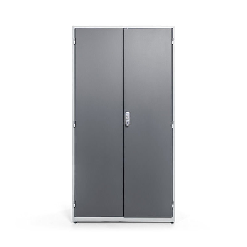 Værktøjsskabet er udstyret med justerbare fødder, der letter placering på ujævne gulve. Lågerne har en solid 3-punkts espanoletlås og fås med cylinderlås eller elektrisk kodelås. Ved bestilling med elektrisk kodelås leveres disse separat og monteres efterfølgende.